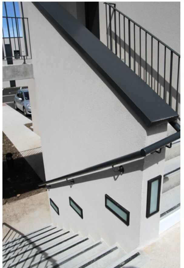 Les escaliers lovés entre chaque bloc créent les évènements en comparaison avec la simplicité des volumes des blocs.