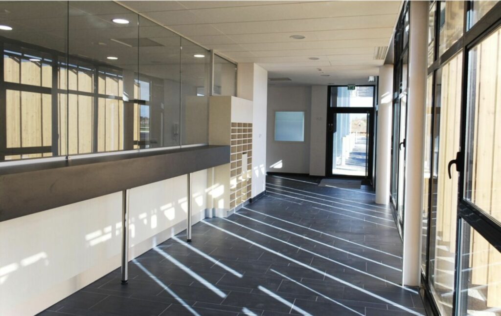 La construction a été imaginée en intégrant des systèmes vertueux ciblés : 30% de bois ont été utilisés en façade et structure. PAC Air/Eau couplée avec une ventilation double flux.