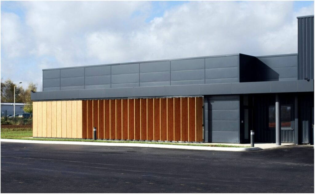 Le bâtiment est composé de deux volumes simples, bureaux + ateliers, construits côte à côte afin de trouver un lien fonctionnel et une harmonie architecturale.