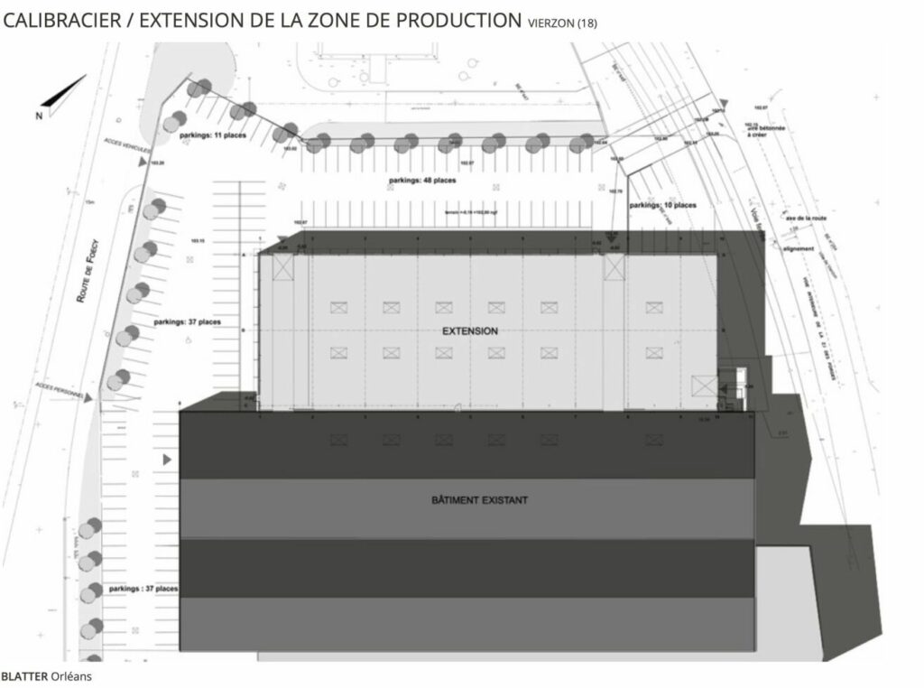 Extension de plain-pied d’environ 2 600 m2 de l’unité de production et de stockage de matière première (acier) de la société Calibracier avec implantation d’un tour d’écroûtage de grandes dimensions. Réaménage.