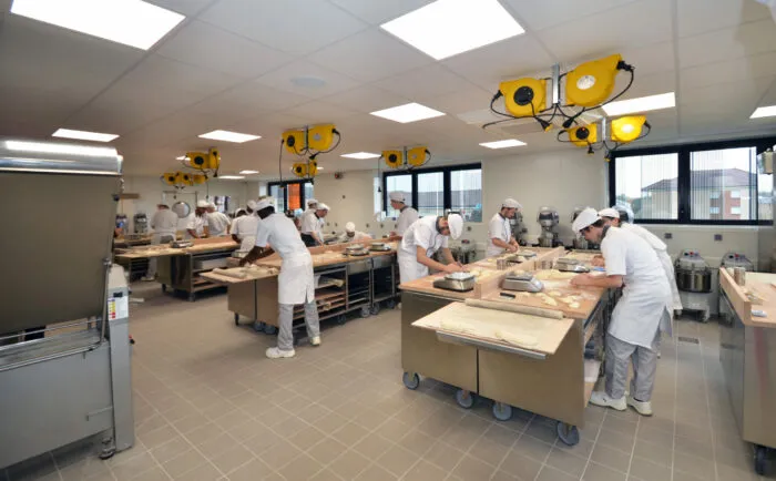 Le projet comprend la construction d’un nouveau bâtiment R+2 hébergeant les nouveaux laboratoires alimentaires du CFA (boulangerie, pâtisserie, boucherie, charcuterie, traiteur et cuisine pédagogique), un espace dédié aux apprentissages de la vente (boutique), une salle des professeurs, des vestiaires apprentis et formateurs, la création d’une liaison avec le restaurant d’application, l’équipement en mobilier, en matériel de laboratoire alimentaire, en matériel pédagogique de ce nouvel ensemble immobilier, la démolition des anciens laboratoires et l’aménagement en parking d’un terrain attenant aux locaux du CFA.