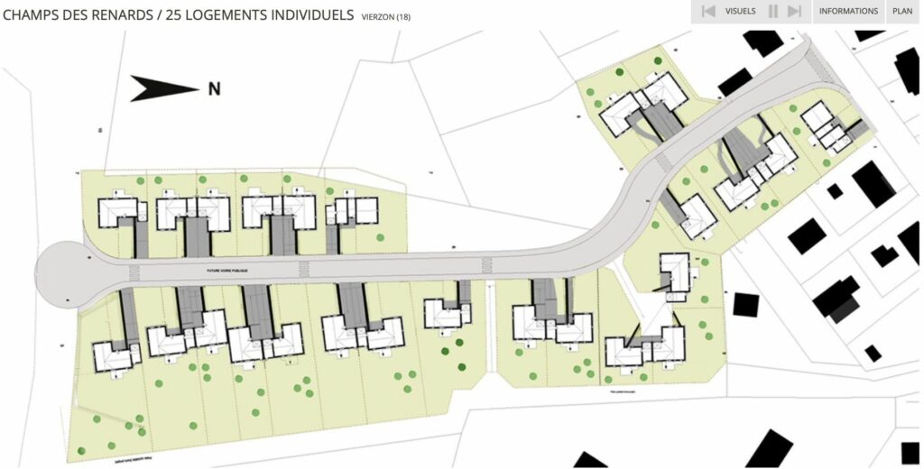 Construction d’un ensemble de 25 logements locatifs individuels de plain-pied, composé de : 13 T3 (72,5 m2), 10 T4 (87 m2) et 2 T5 (99 m2).