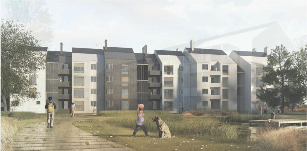 Cet ensemble de petits immeubles collectifs comprend 126 logements sociaux, réparties dans 10 bâtiments sur un site de 3.5 hectares.