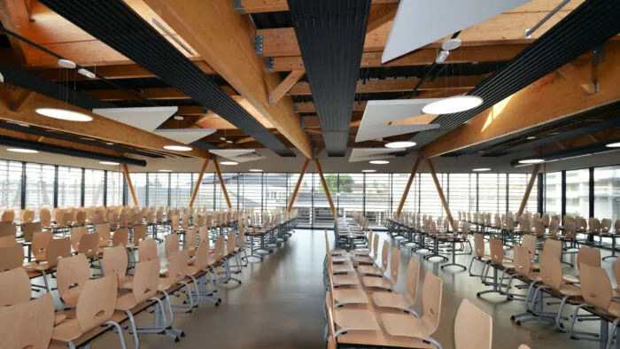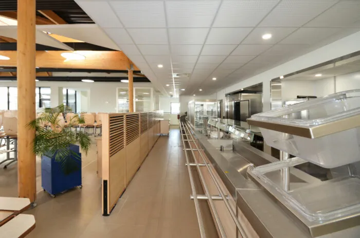 L’ancienne demi-pension de Collège Robert Goupil de Beaugency souffrait de multiples carences et de dysfonctionnements. L’opération consiste à remplacer l’ensemble du bâtiment existant et de ses équipements (démolition) par une unité plus performante et accueillante. Ce nouveau projet combine une cuisine en lien avec l’Unité Centrale de Production de la ville sur une surface de 383 m2 (compris locaux annexes) et une salle à manger permettant d’accueillir 300 rationnaires (600 en2 services) avec 26 adultes sur une surface de 492 m2. Les espaces extérieurs périmétriques au projet sont traités dans la cadre de l’opération (voirie, espaces végétalisés, cours d’évolution…)
