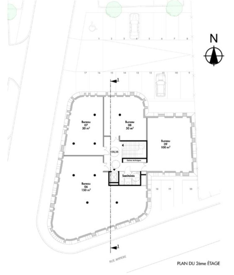 Inscrit dans une parcelle de 900 m2, à l’entrée de la zone d’Activités Économique du Comitec à Bourges, le présent programme consiste en la construction d’un bâtiment à vocation tertiaire d’environ 1 200 m2 sur R+1+Comble, ainsi que l’aménagement d’un parking attenant.