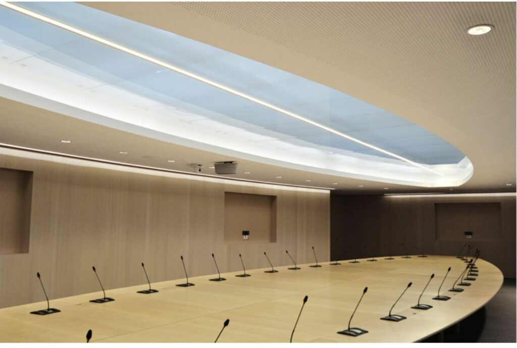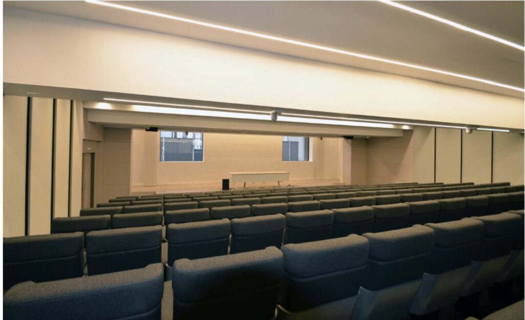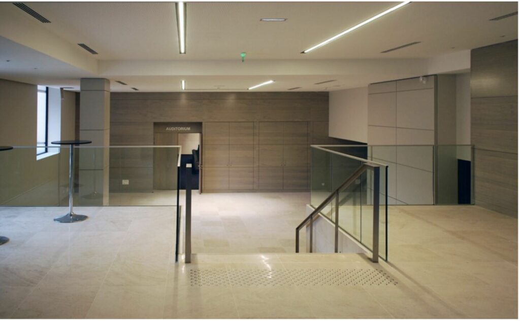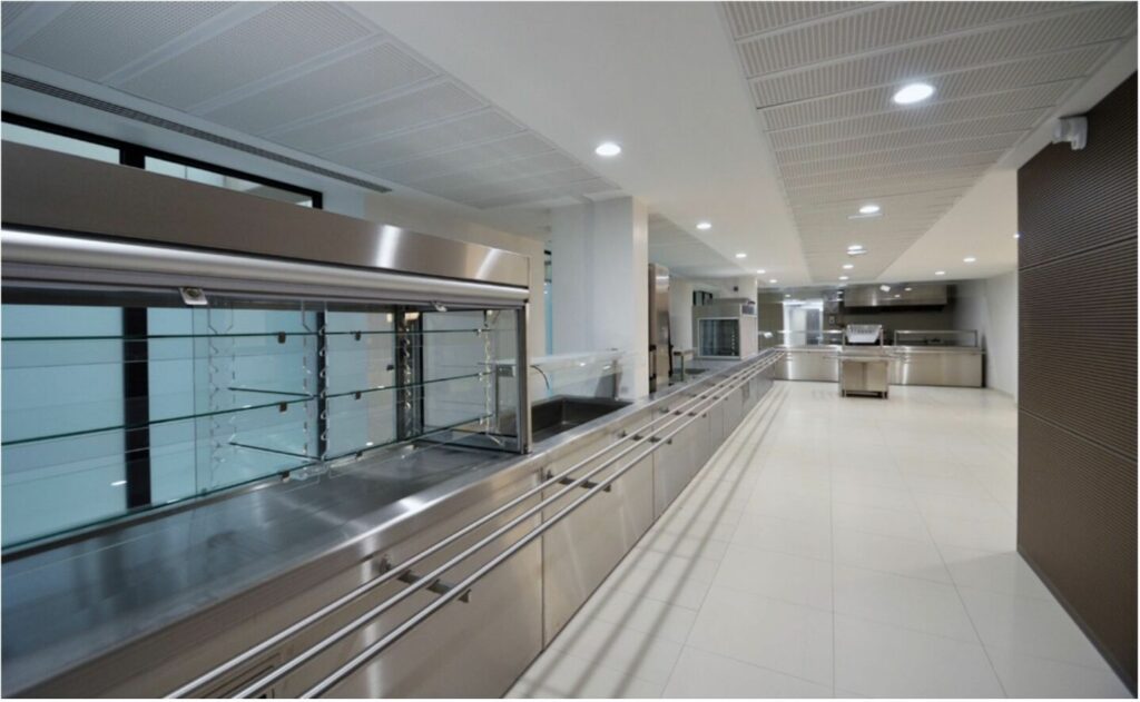 – Niveau -1 : 1 parking principal (250 places)- Niveau RDC : les halls d’accueil, 1 salle de conférence de 176 places, le service courrier, 1 restaurant inter-entreprises de 170 places et sa cuisine (300 repas/jour),