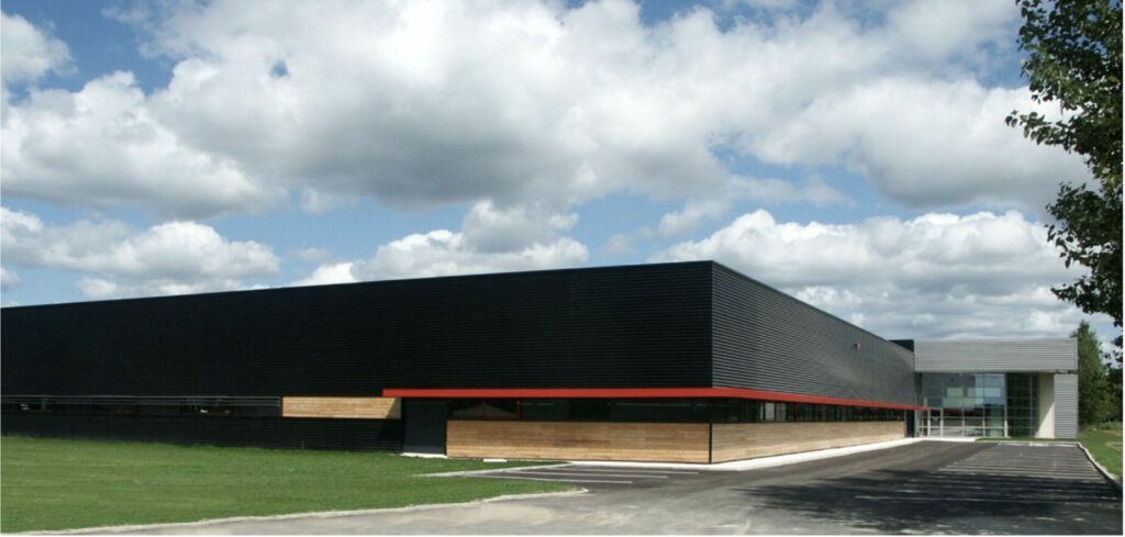 Dans ce site exceptionnel, entre industrie et Sologne, cette extension s’inscrit avec simplicité entre des bâtiments existants à l’architecture affirmée. Le noir de cette extension a la prétention de confirmer le parti sans ajouter une modénature supplémentaire au site.