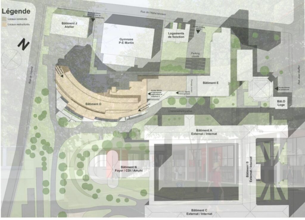 – la restructuration de la partie section hôtellerie située au RDC du bâtiment D, consacré aux 2 ensembles de cuisines pédagogiques.